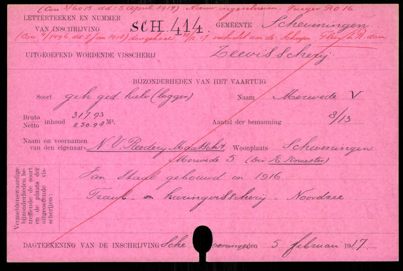 doorgehaald. Per 27-12-1917 verkocht aan scheepsmakelaardij Flevo te Rotterdam.
